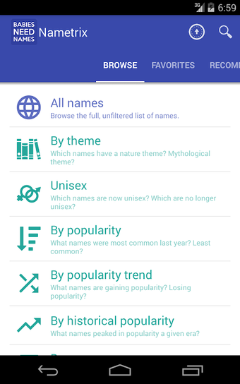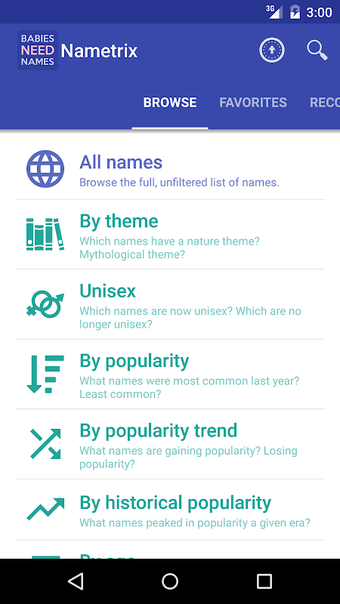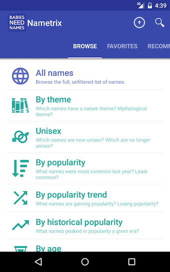 Appen innehåller även ett brett utbud av teman och kategorier för namn, såsom vintage, bibliska och unisex. Användare kan även se popularitetsgrafer och få förslag på syskonnamn. Med funktioner som möjlighet att dela namn via sociala medier och en interaktiv funktion för att betygsätta namn, är Baby Names by Nametrix en kraftfull och inspirerande app för alla som är intresserade av namn och deras betydelser.