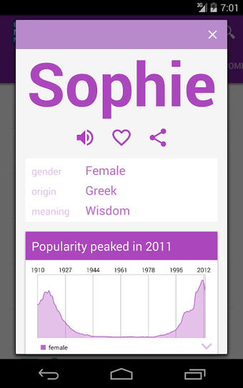 Baby Names by Nametrix är en omfattande app för att söka och bläddra bland baby namn. Den erbjuder tusentals namn för både pojkar och flickor, tillsammans med detaljerad information om namnen, inklusive ursprung, betydelse och populäritet. Appen har även ljuduttal, vilket gör det lättare att lära sig hur namnen uttalas. Användare kan spara sina favoriter och få rekommendationer baserat på deras val, vilket gör det till en praktisk resurs för blivande föräldrar och författare.